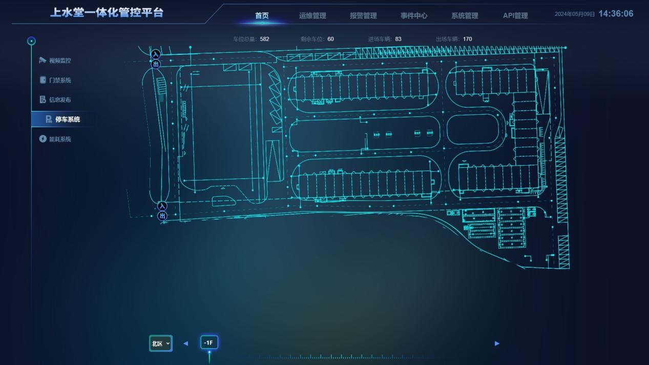 实现车库、车位、车辆信息等数据统一在该系统中集中管理,并打通备个数据间接口形成数据报表,采用平台集中管控、智能运维等一整套功能,帮助管理者实现运营效率的提升。